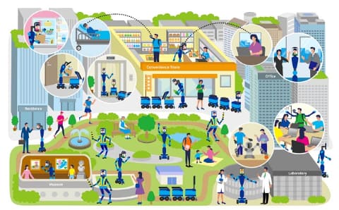 次世代遠隔操作ロボットは、自律型ロボットが安全面やコスト面から導入できない場面や、人が物理的な作業を行なうことが困難な場面などでの利用を目指すもの。テレプレゼンス技術と共に、オフィスや店舗、家庭など日常社会のさまざまな場面での利用が想定されている。