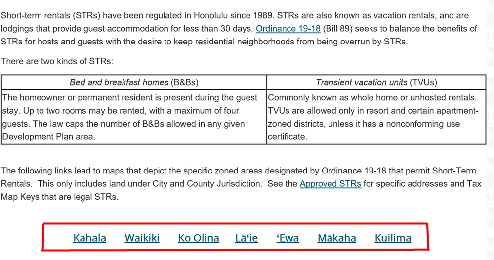 オアフ島で短期貸し営業の許可を持っている部屋のリストはここをクリック