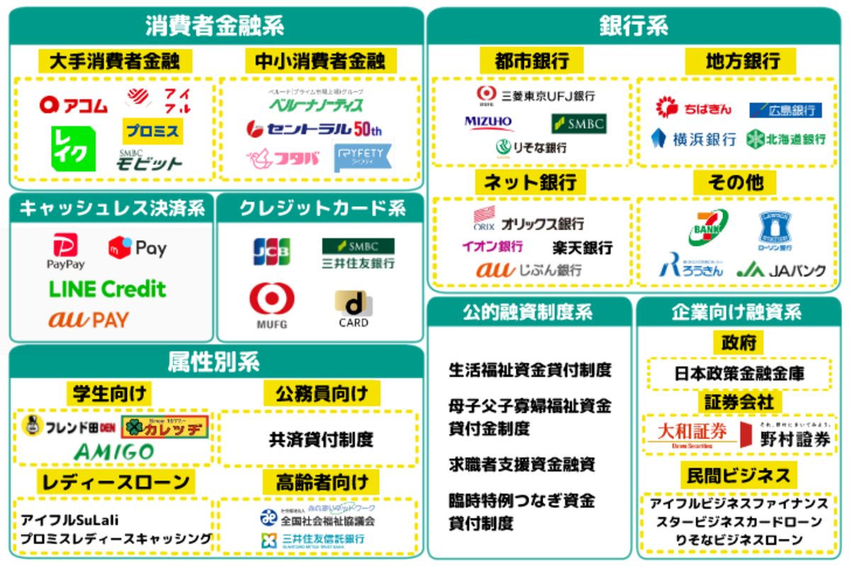 お金を借りる方法の一覧は、以下のとおりです。